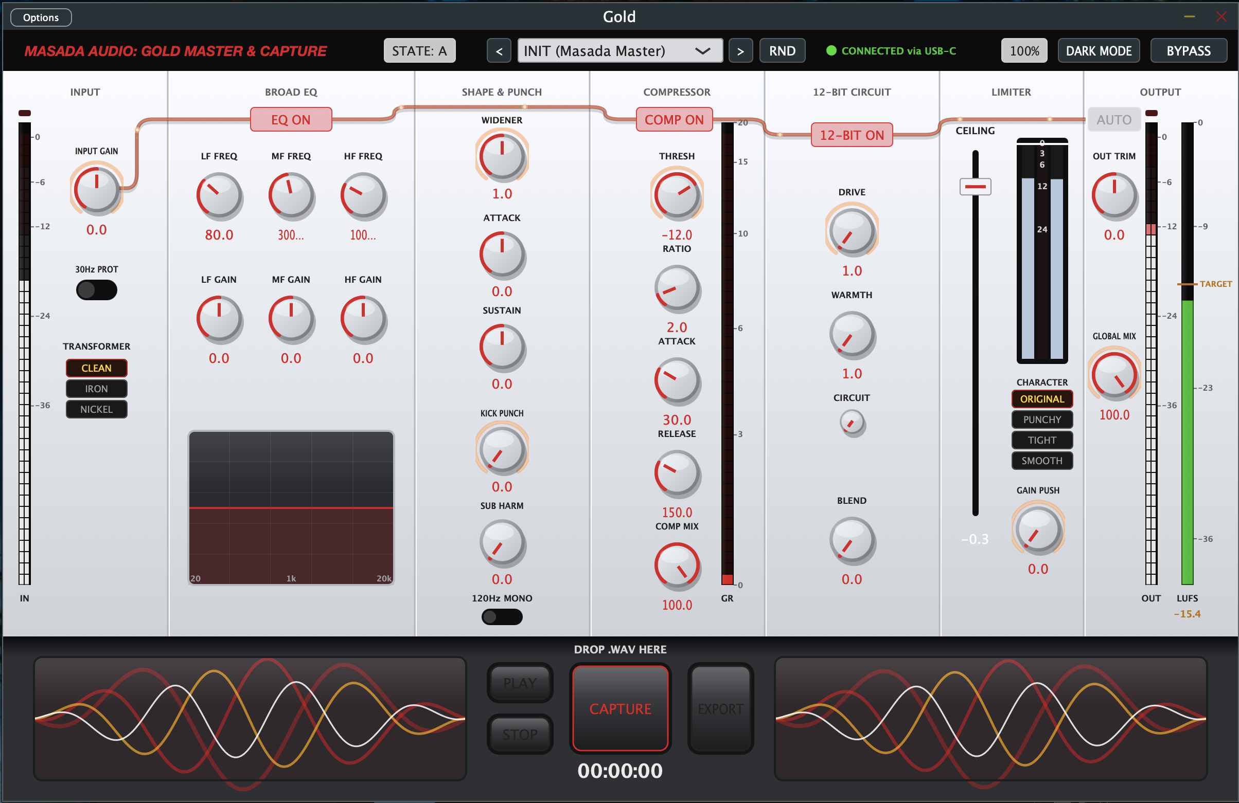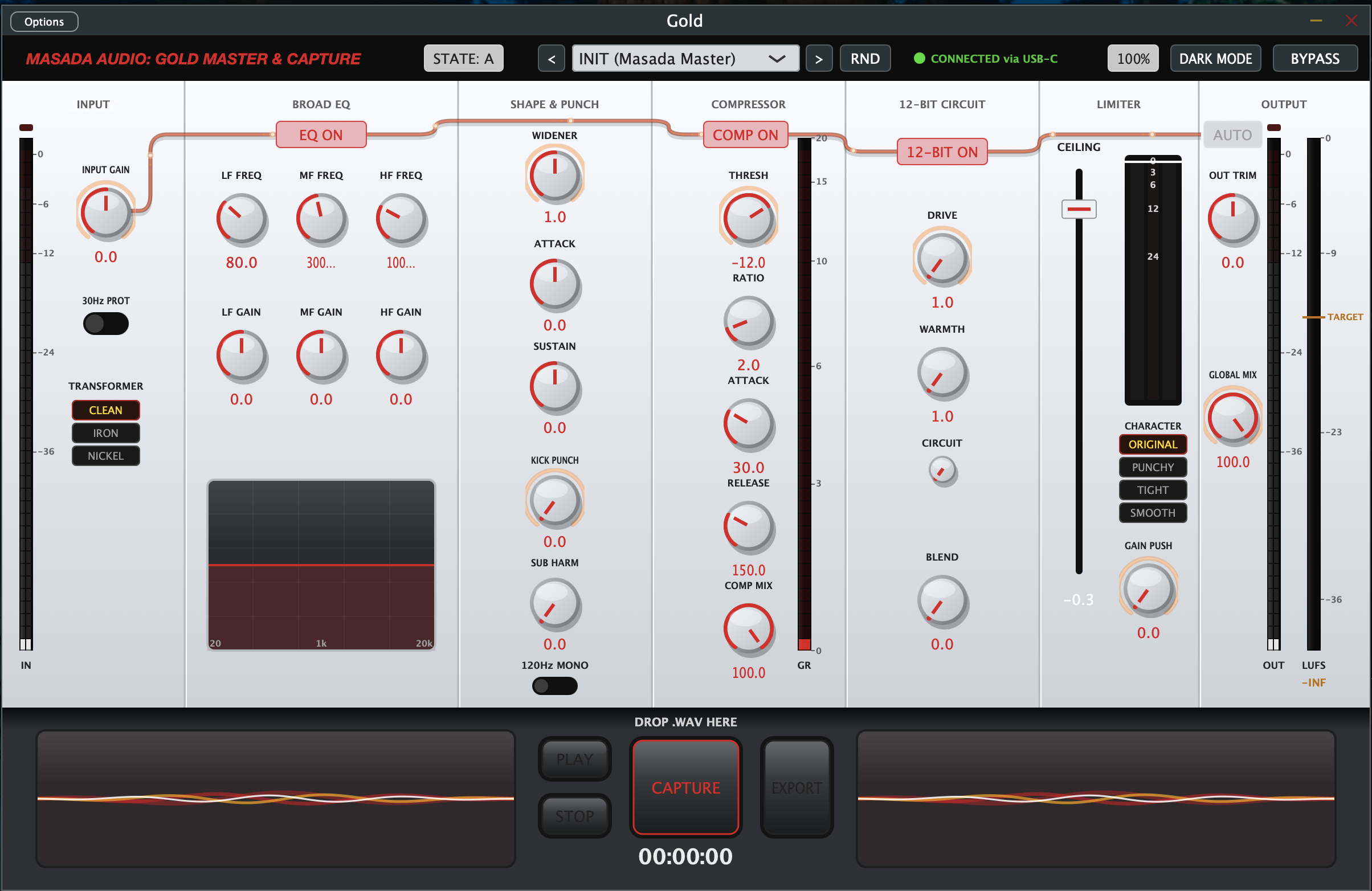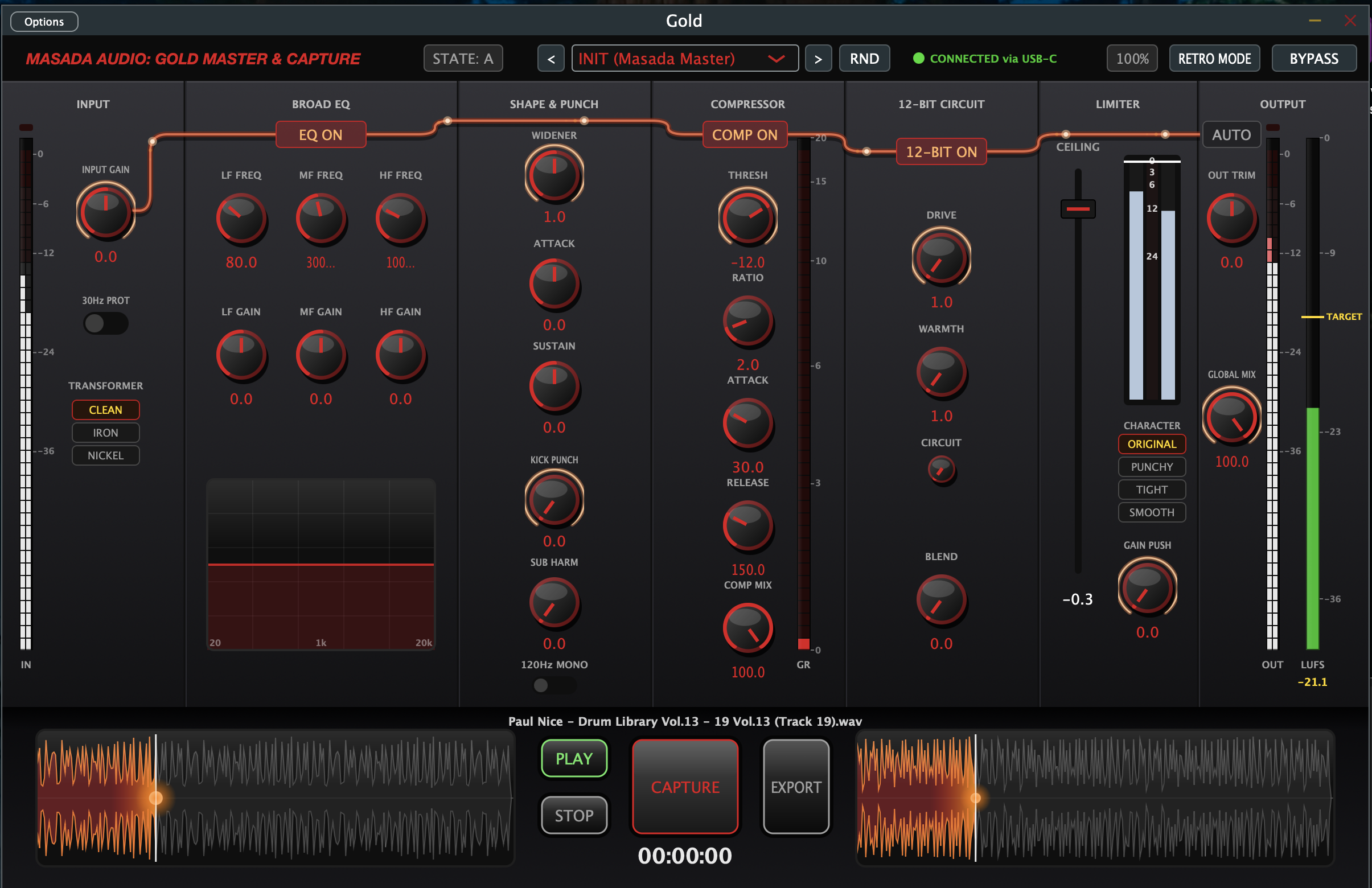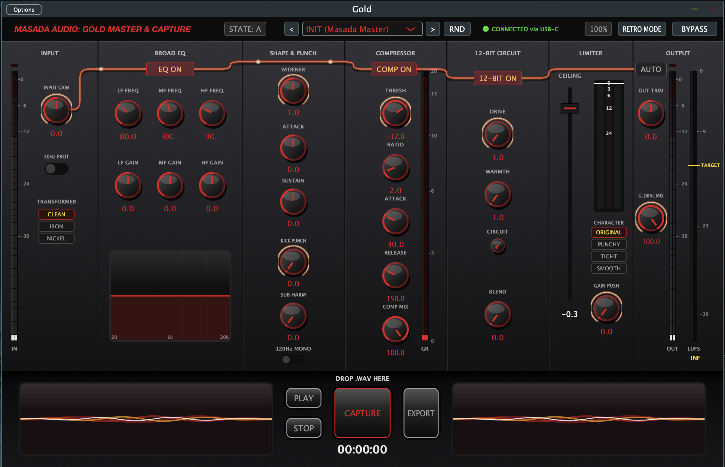 Live Capture: Hit the Capture button to instantly record your live hardware jams or plugin processing directly to a high-res 24-bit WAV file on your Desktop. Perfect for fast sampling workflows.